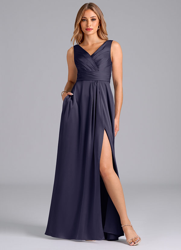 Jurk van Stretch Satijn met A-Lijn Geplooid Stormachtig
