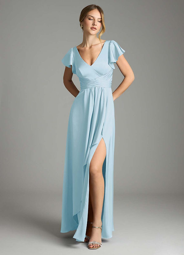 Jurk van Stretch Satijn met Kolom One-Shoulder Hemelsblauw