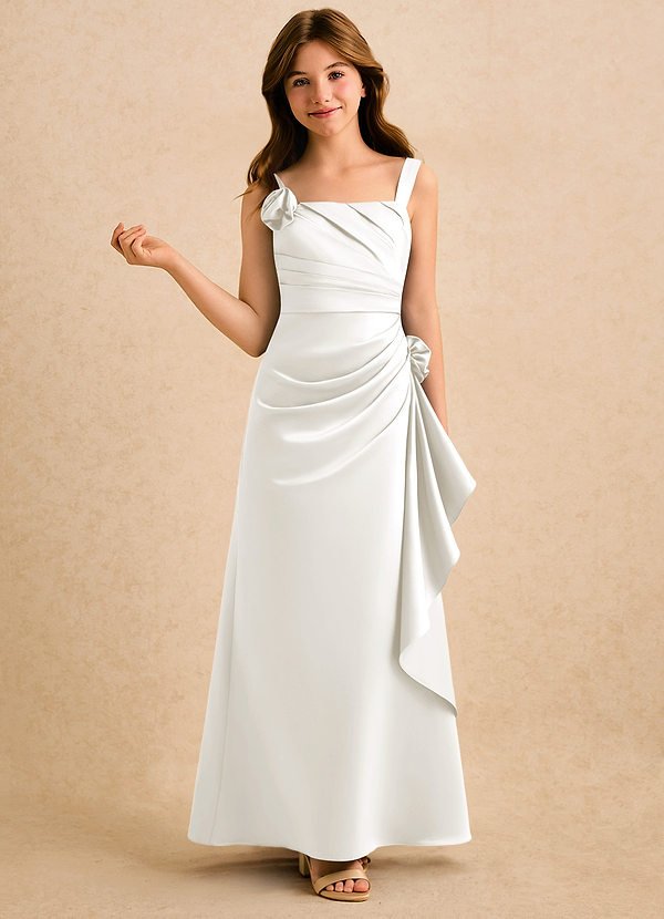 A-Lijn Jurk van Mat Satijn Geplooid Ivoor