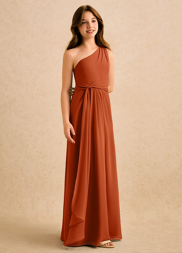 Kolom Jurk van Chiffon One-Shoulder Verbrande Sinaasappel