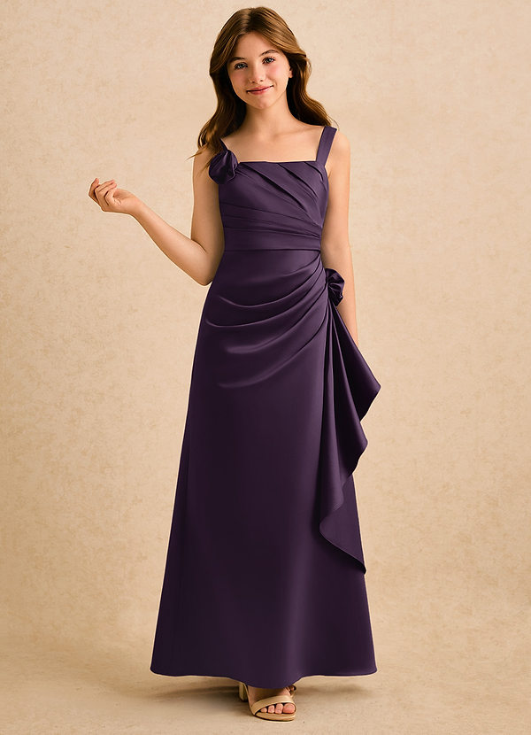 A-Lijn Jurk van Stretch Satijn Geplooid Pruim