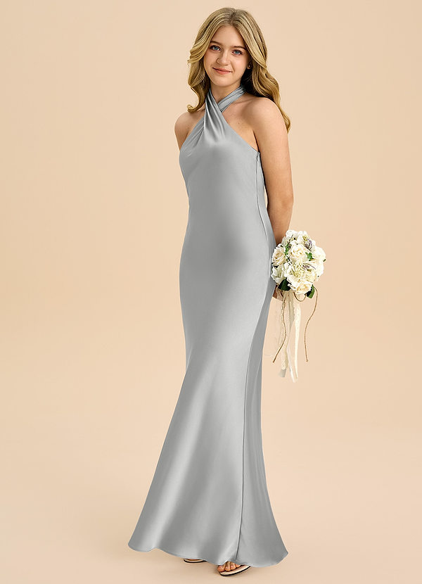 Jurk van Stretch Satijn met Kolom Geplooid Zilver