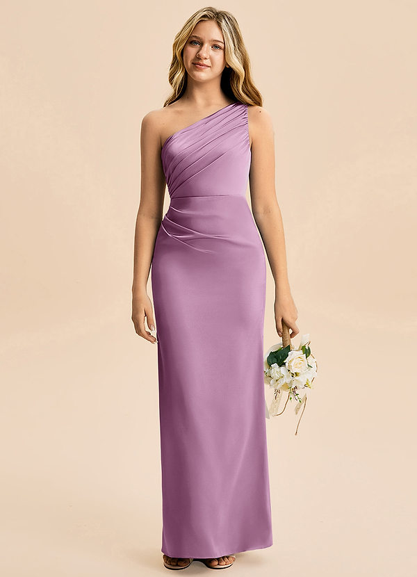 Jurk van Stretch Satijn met Kolom Geplooid Blauweregen