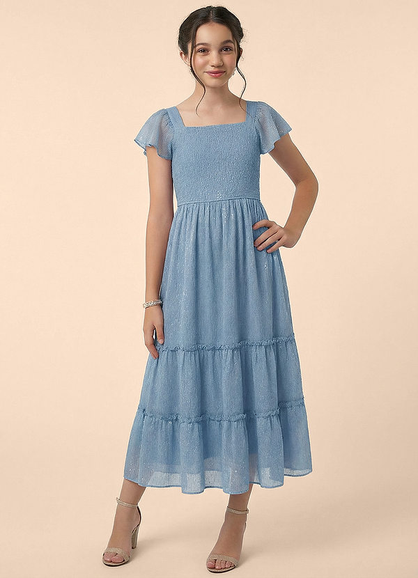 Jurk van Chiffon met A-Lijn Ruches Schemeringspoederblauw