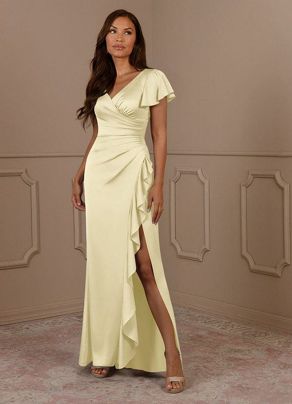 A-Lijn Jurk van Stretch Satijn Geplooid Citroensorbet