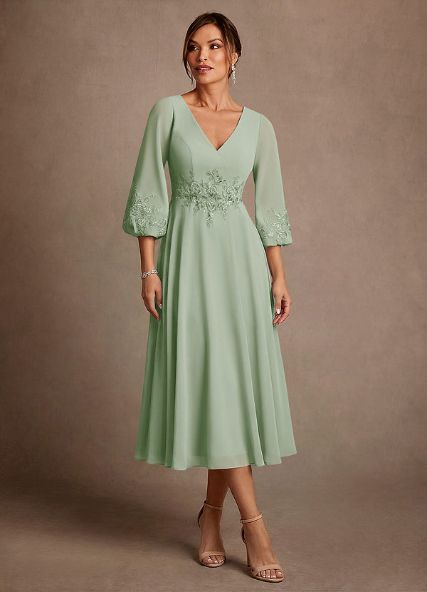 A-Lijn Jurk van Chiffon Kant Stoffige Salie