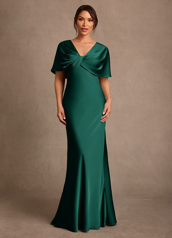 Kolom Jurk van Stretch Satijn Geplooid Smaragd