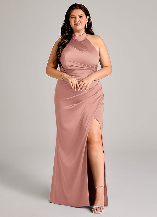 Converteerbaar Jurk van Stretch Satijn met Zeemeermin One-Shoulder Poederroze
