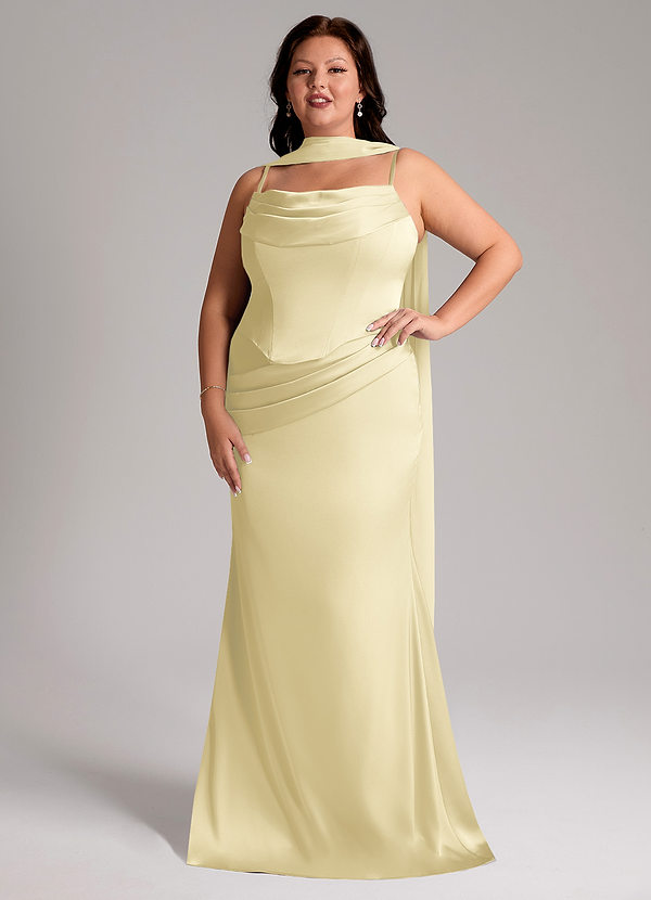 Converteerbaar Jurk van Stretch Satijn met Zeemeermin Off the Shoulder Citroensorbet
