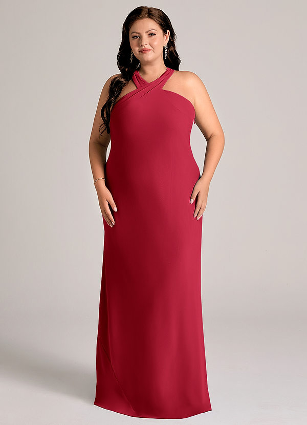 I chose scarlet because it reminded me of old Hollywood. I wanted to go for a classic glam wedding theme so my bridesmaids wore the Azazie Kelly. Scarlet was a classic color that looked very sophisticated and chic. We accessorized the dress with white pearls for a finishing touch.