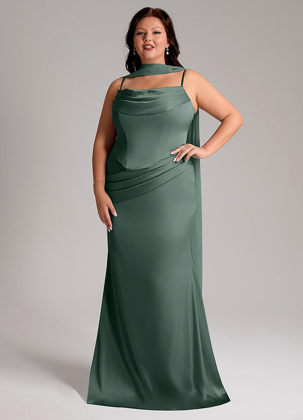 Jurk van Stretch Satijn met Kolom Geplooid Stoffige Salie