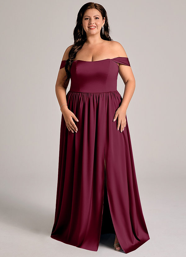 Converteerbaar Jurk van Stretch Satijn met A-Lijn Off the Shoulder Moerbei