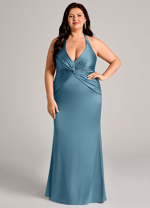 Jurk van Stretch Satijn met A-Lijn Agave