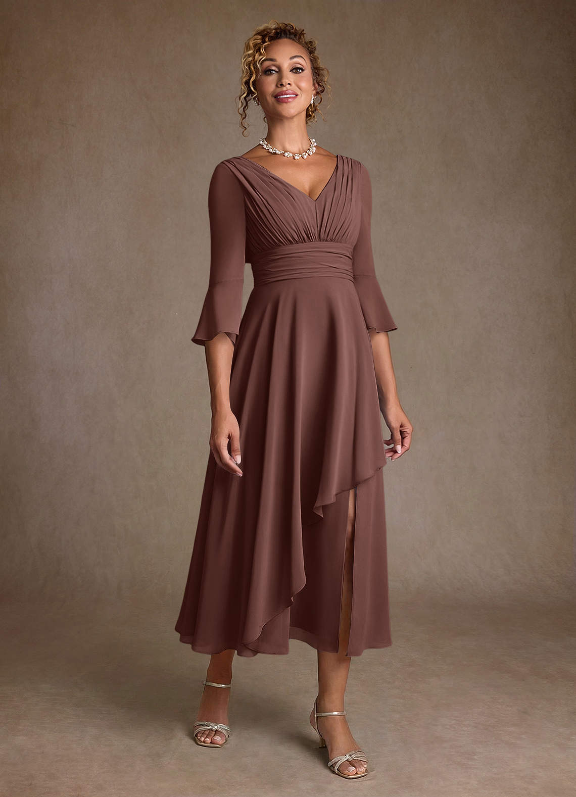 A-Lijn Jurk van Chiffon Geplooid Espresso