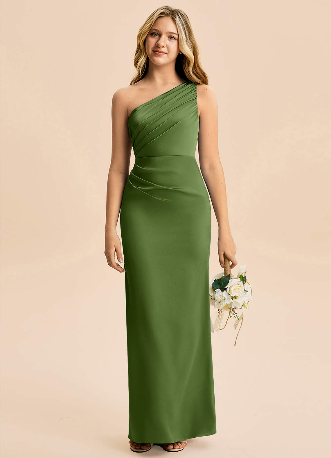 Jurk van Stretch Satijn met Kolom Geplooid Jeneverbes