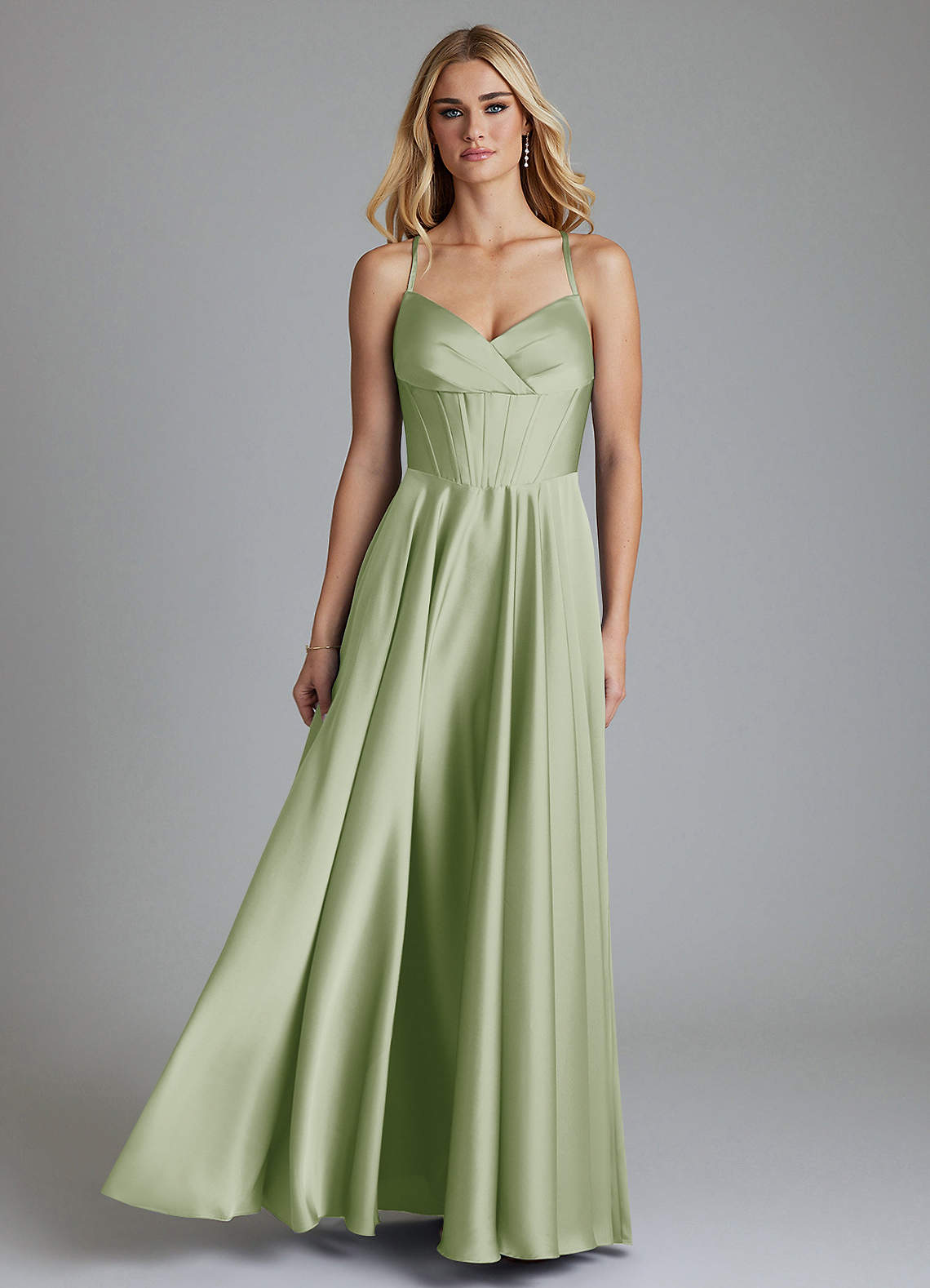 Azazie Alaia Jurken voor bruidsmeisjes Jurk van Stretch Satijn met A-Lijn Korset Stoffige Salie image1