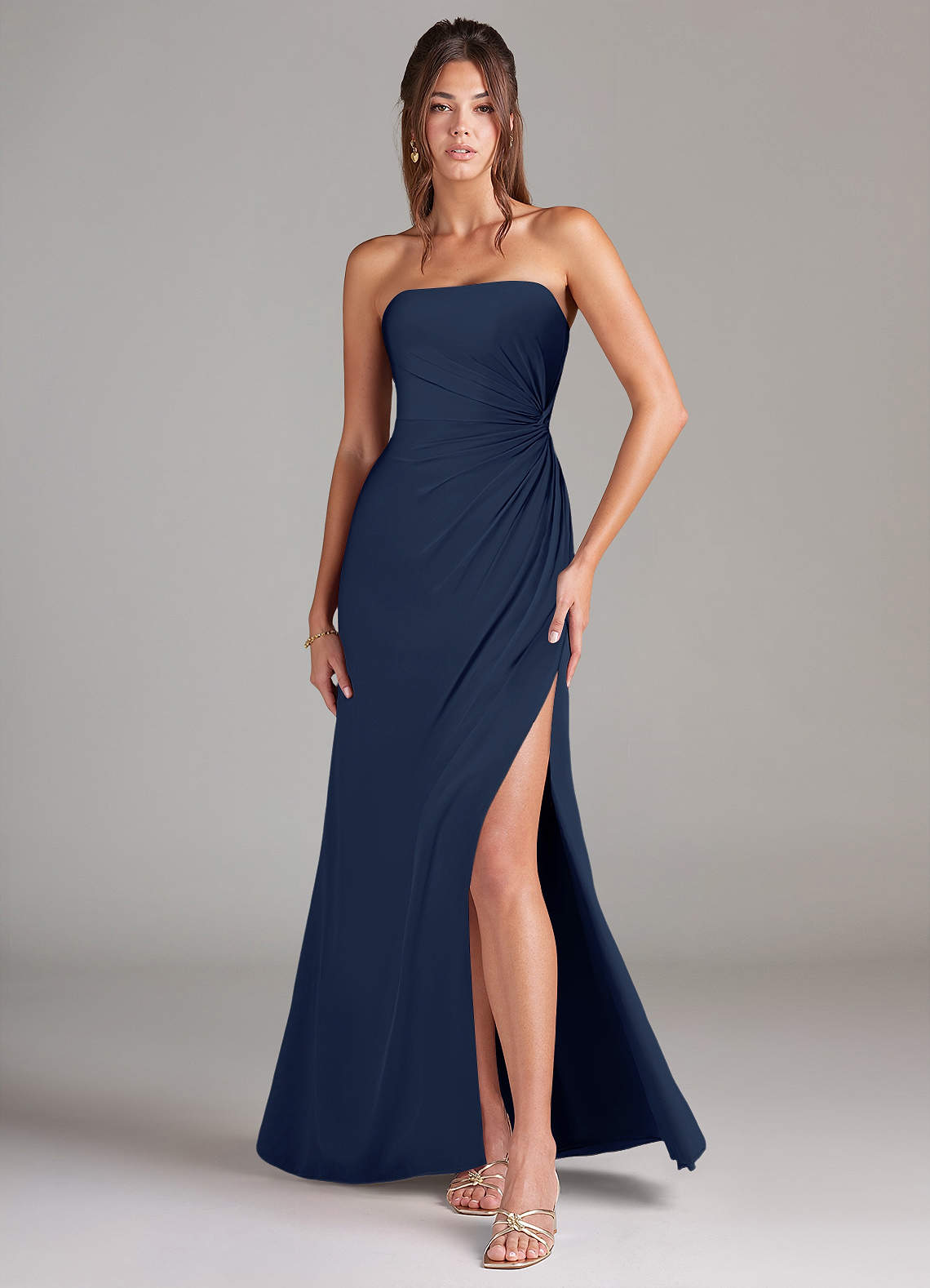 Converteerbaar Jurk van Chiffon met Kolom Strapless Donkere Marine