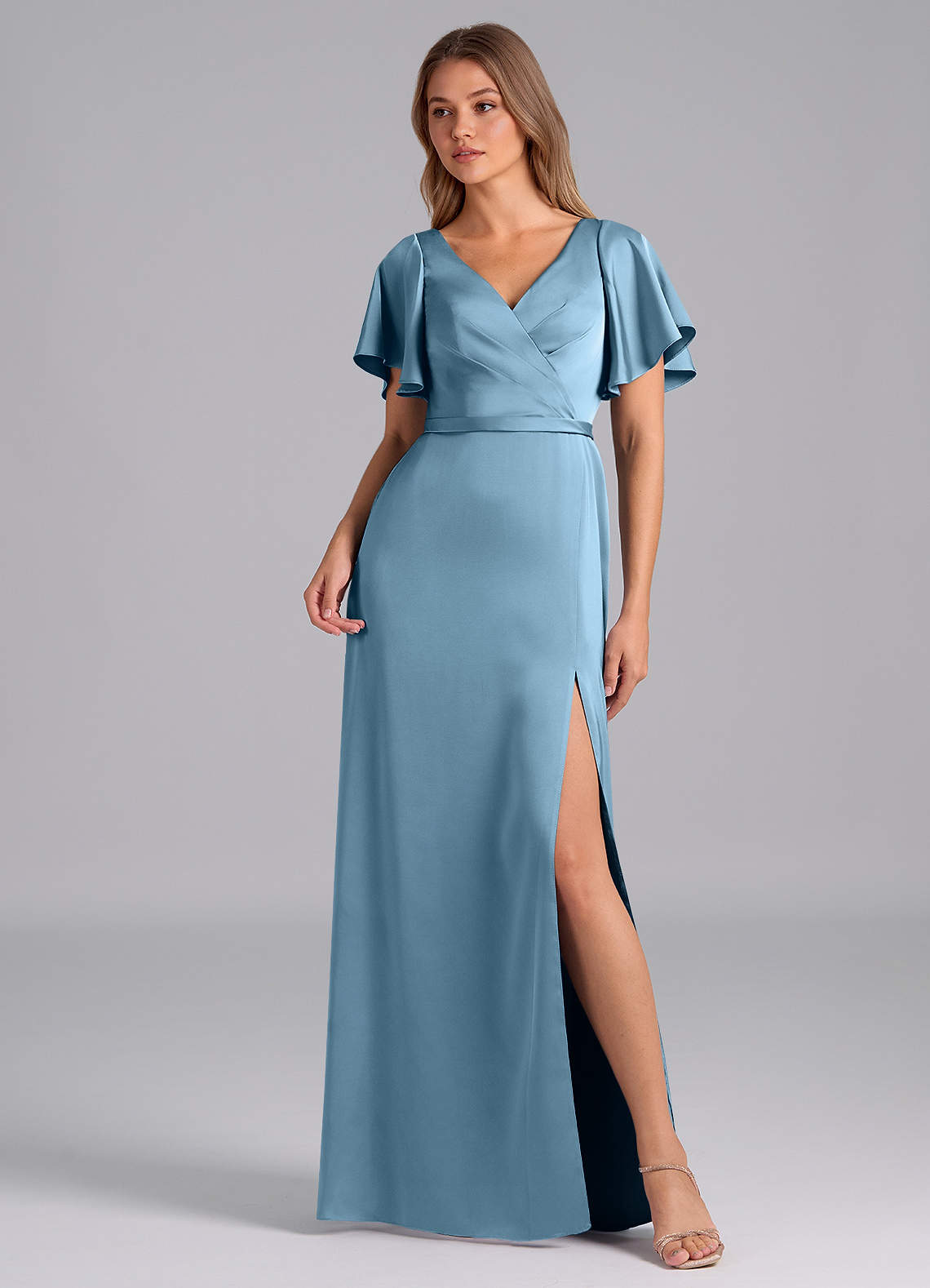 Jurk van Stretch Satijn met A-Lijn Geplooid Staal Blauw