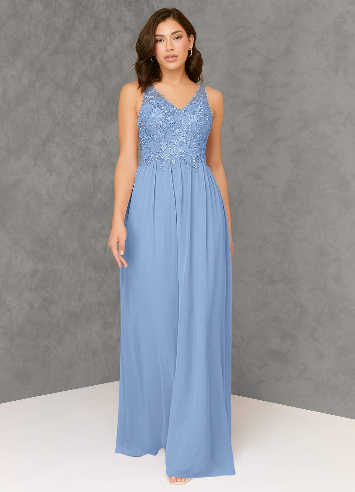 Jurk van Chiffon met A-Lijn Kant Staal Blauw