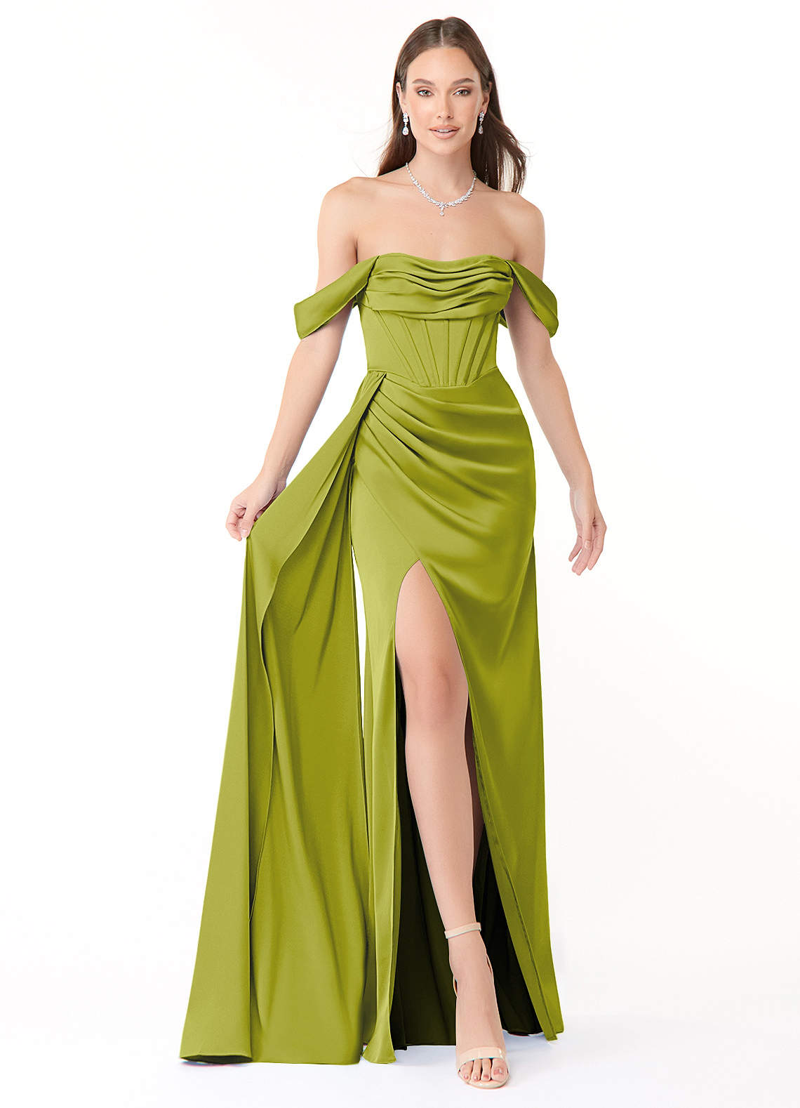 Converteerbaar Jurk van Stretch Satijn met Zeemeermin Off the Shoulder Citroengras