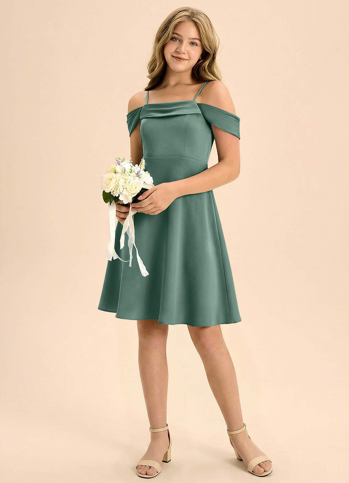 Jurk van Stretch Satijn met A-Lijn Geplooid Eucalyptus