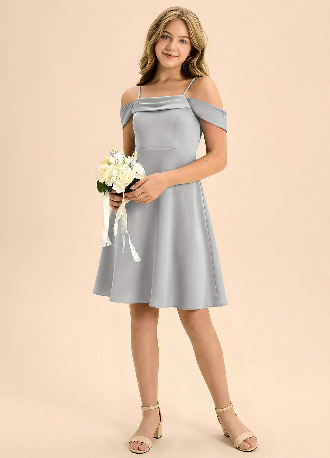 Jurk van Stretch Satijn met A-Lijn Geplooid Zilver