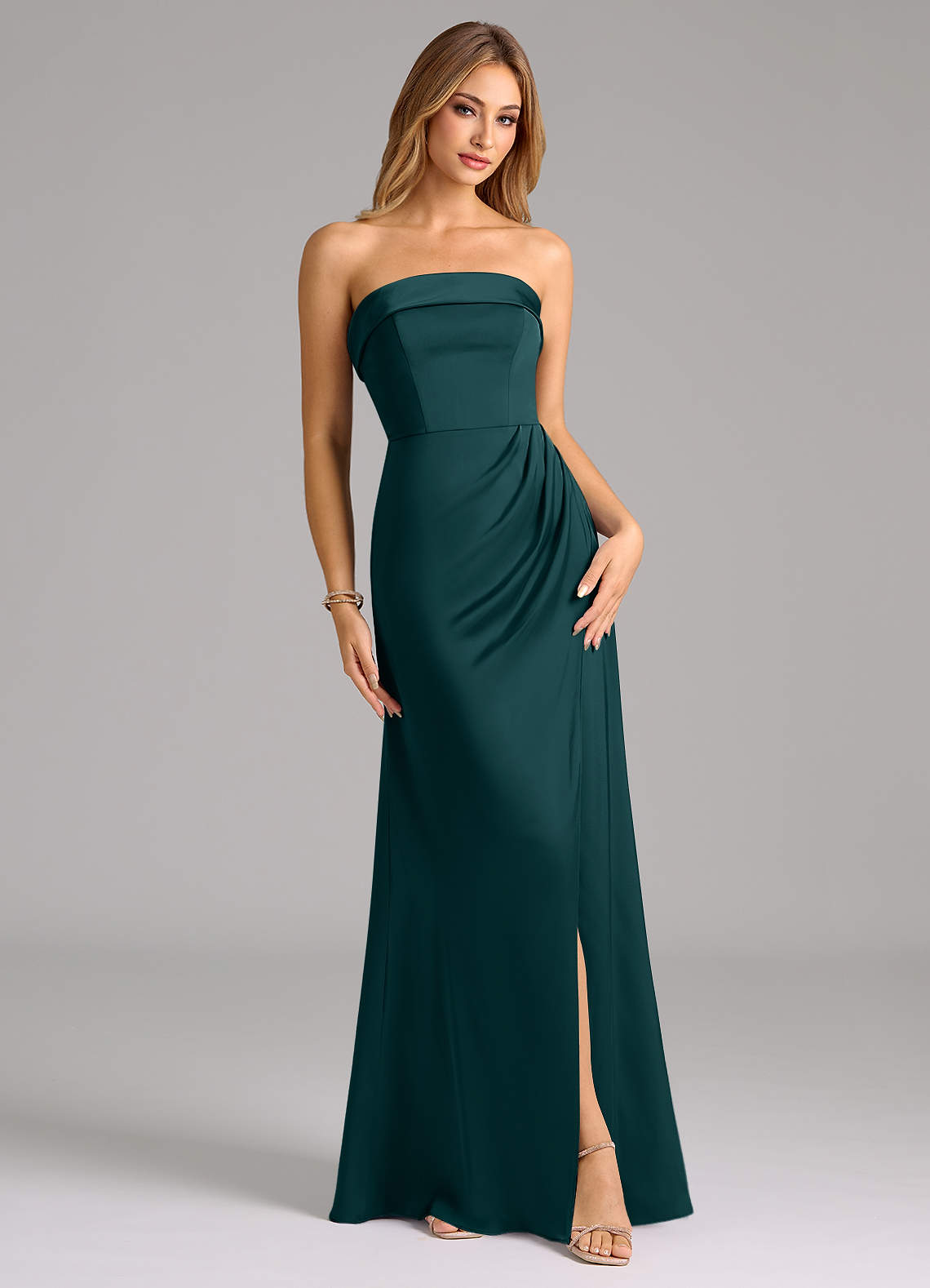 Converteerbaar Jurk van Stretch Satijn met A-Lijn Strapless Pijnboom