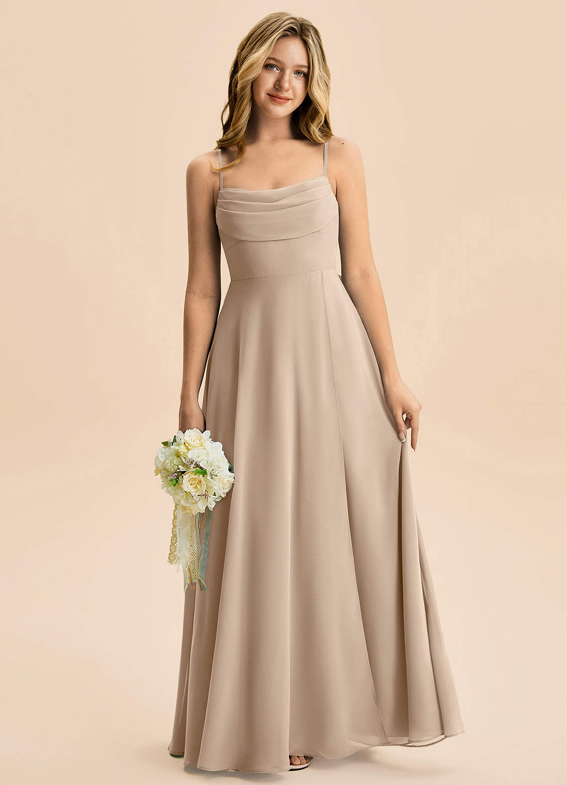 Jurk van Chiffon met A-Lijn Geplooid Taupe