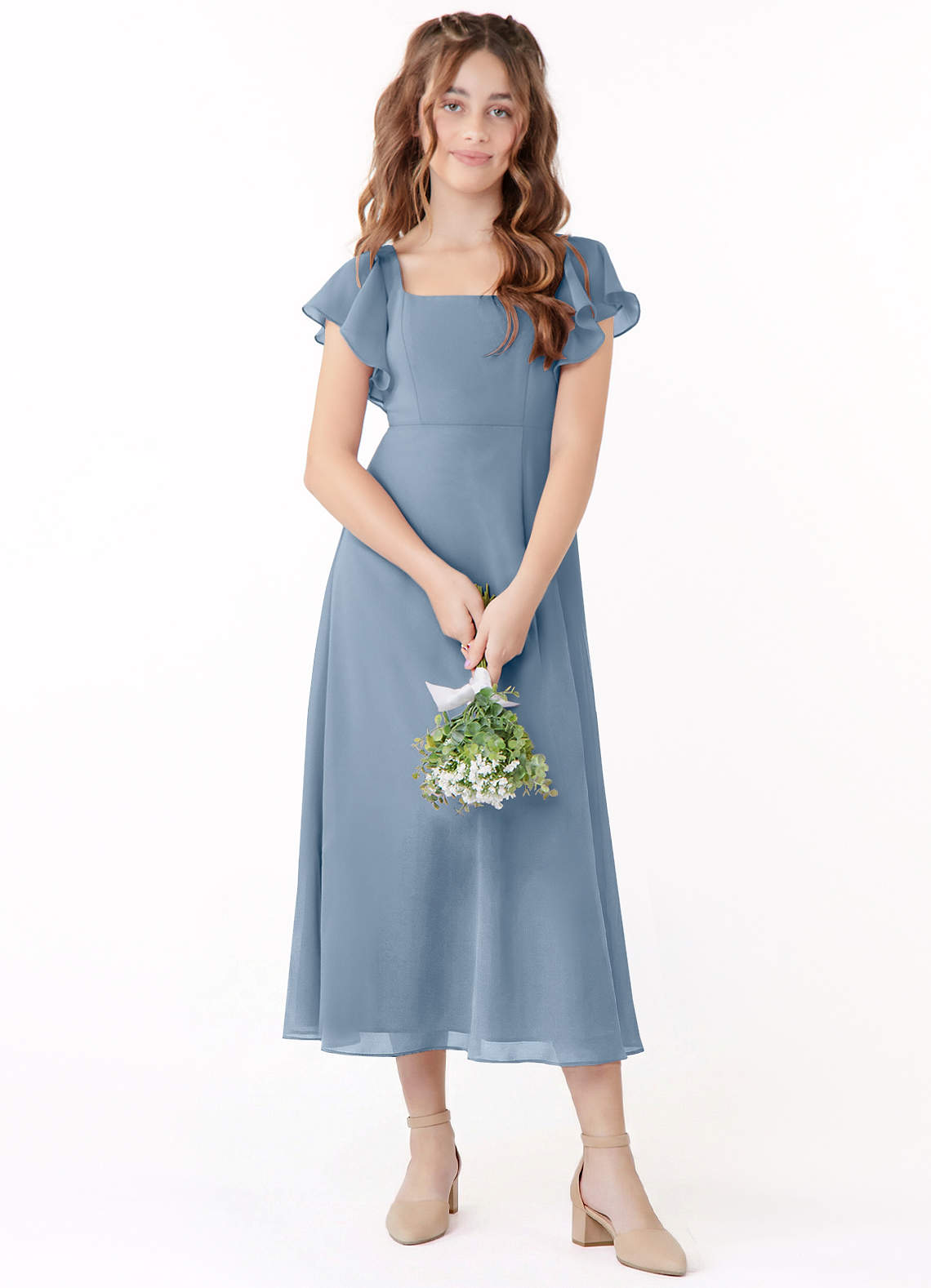 Jurk van Chiffon met A-Lijn Ruches Stoffig Blauw