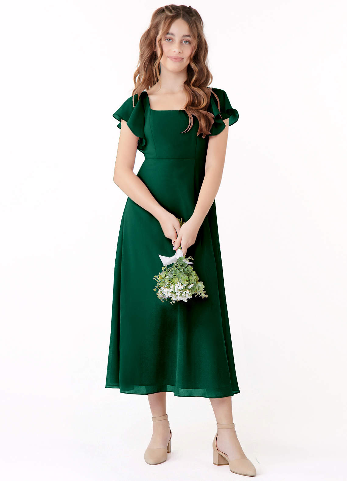 Jurk van Chiffon met A-Lijn Ruches Smaragd