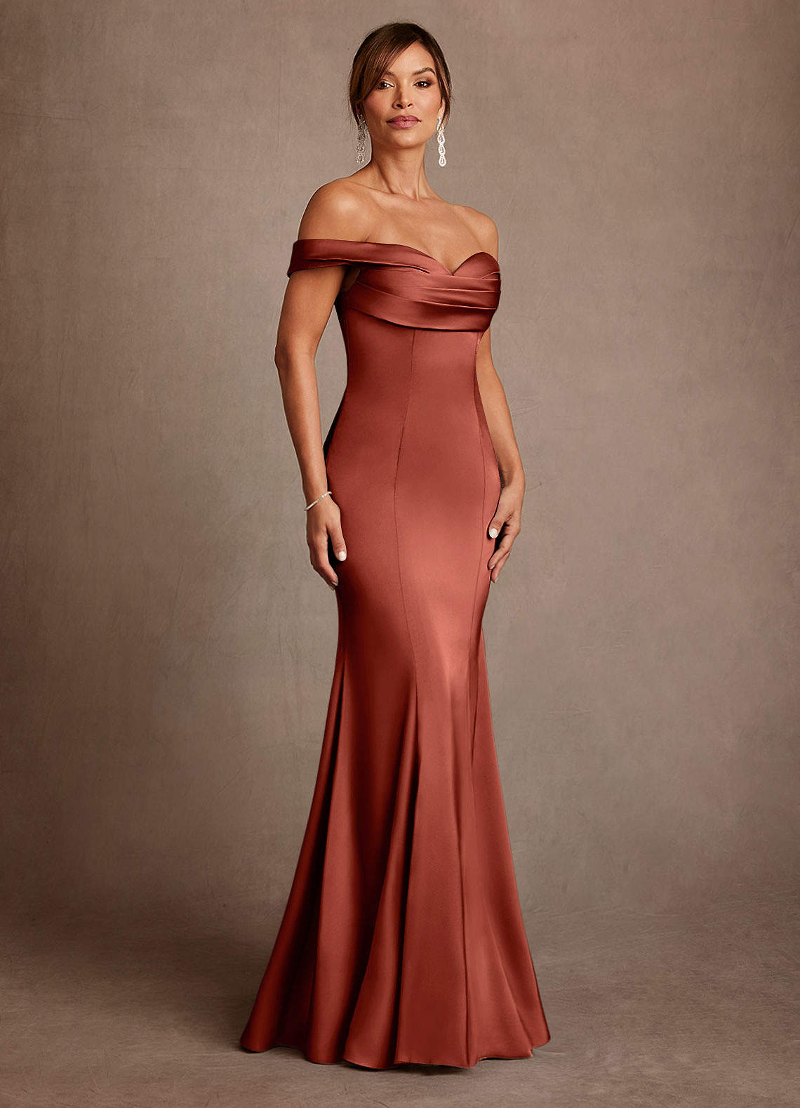 Zeemeermin Jurk van Stretch Satijn Off the Shoulder Terracotta