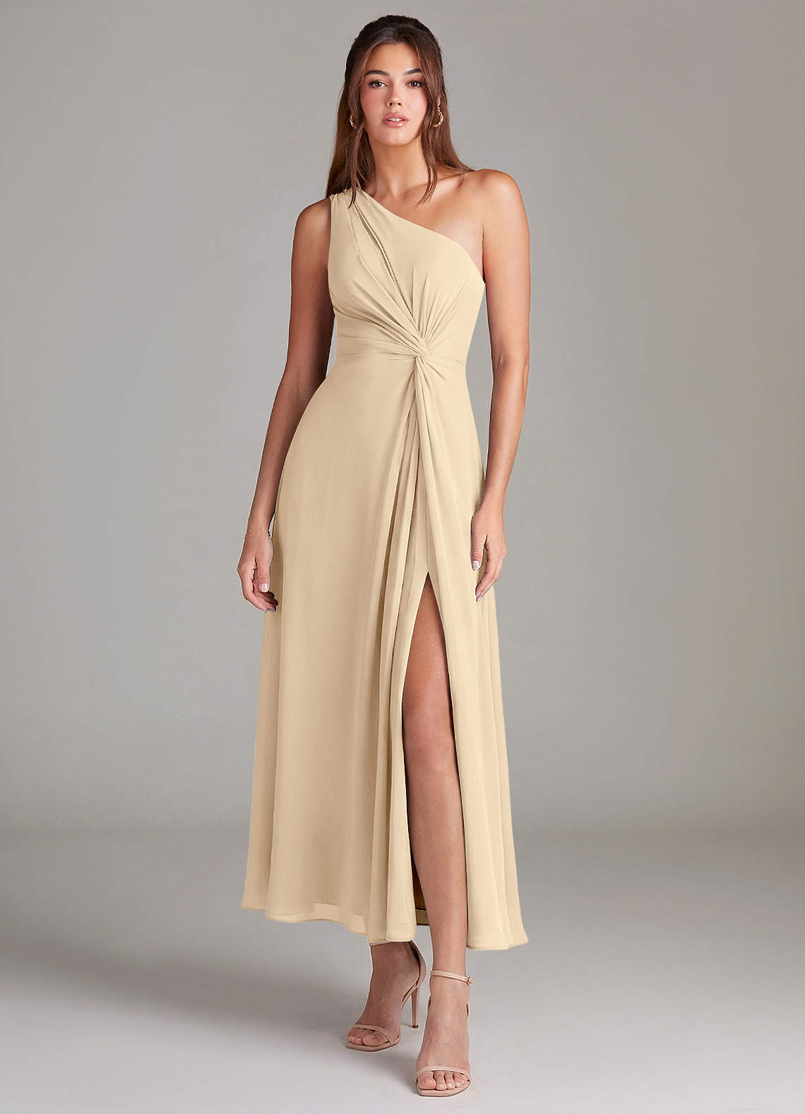 Jurk van Chiffon met A-Lijn One-Shoulder Champagne