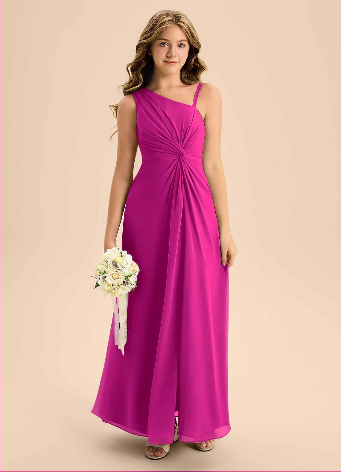 Jurk van Chiffon met A-Lijn Zijsplit Fuchsia