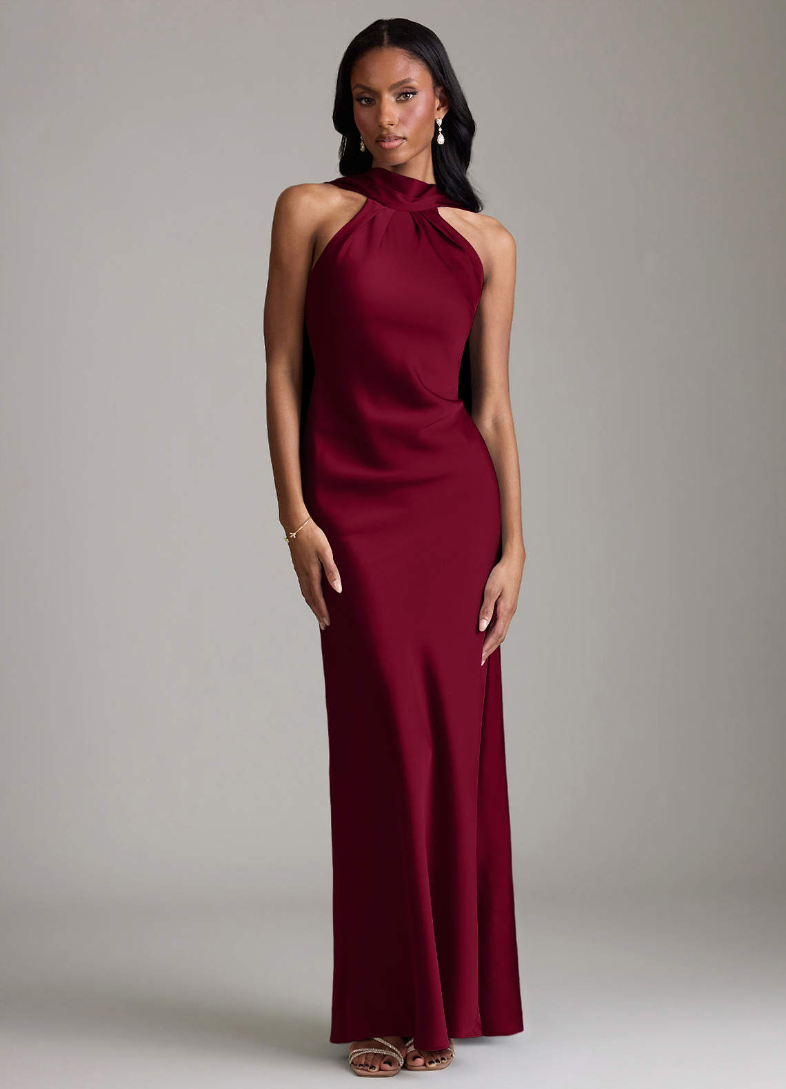 Jurk van Stretch Satijn met Zeemeermin Geplooid Bourgondië