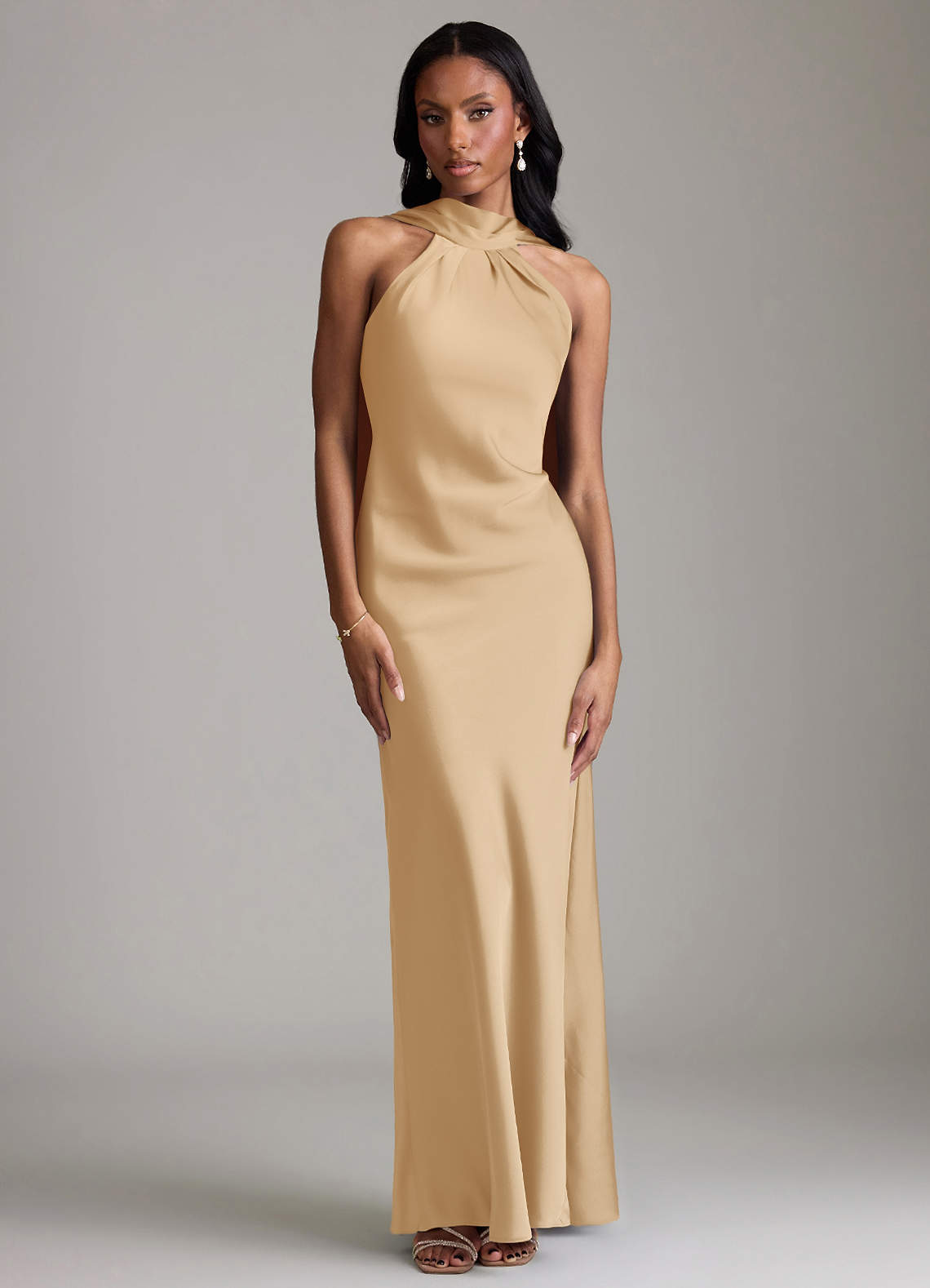 Jurk van Stretch Satijn met Zeemeermin Geplooid Goud