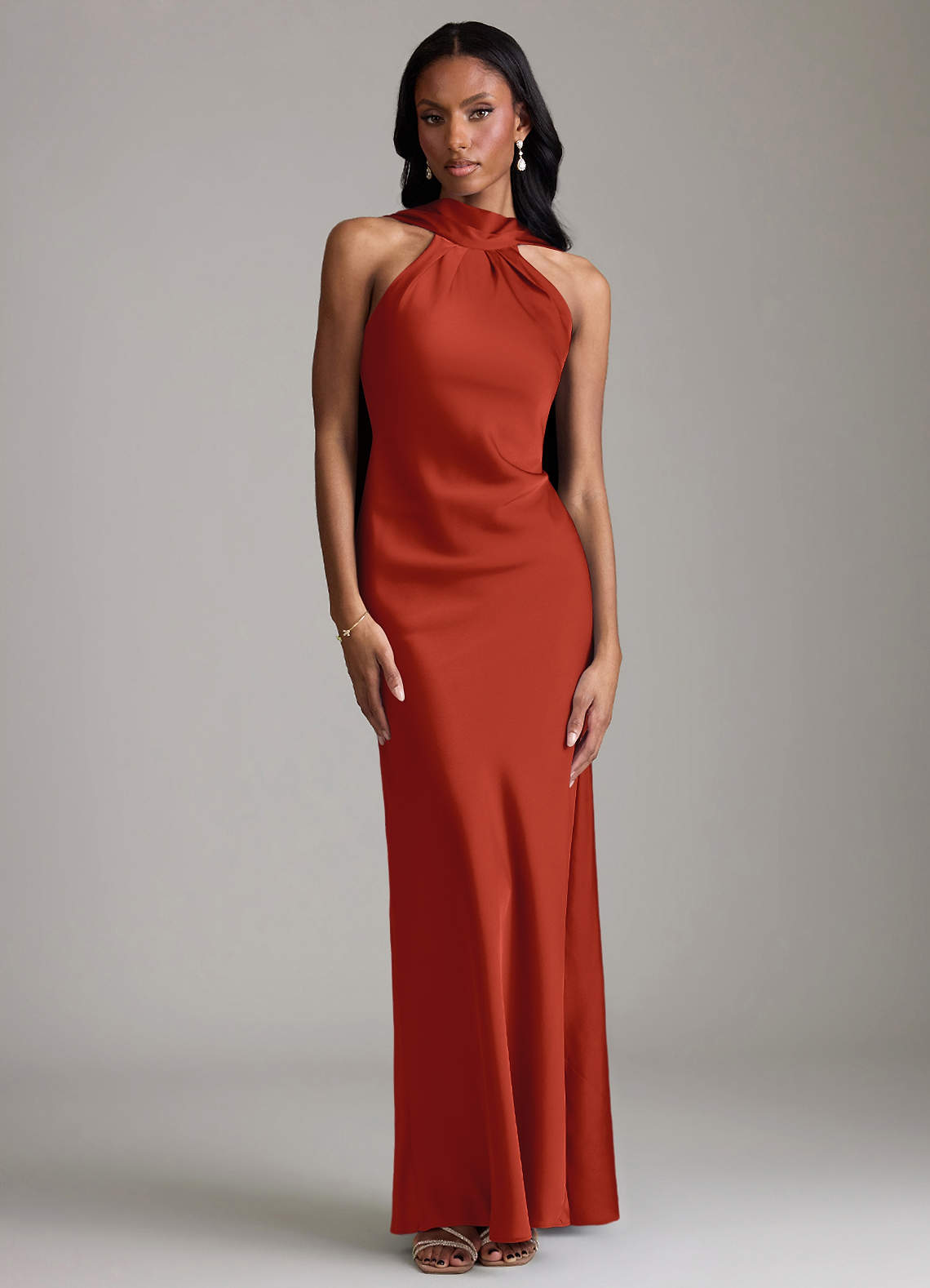 Jurk van Stretch Satijn met Zeemeermin Geplooid Roest