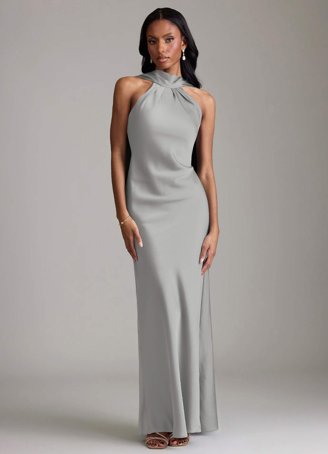 Jurk van Stretch Satijn met Zeemeermin Geplooid Zilver