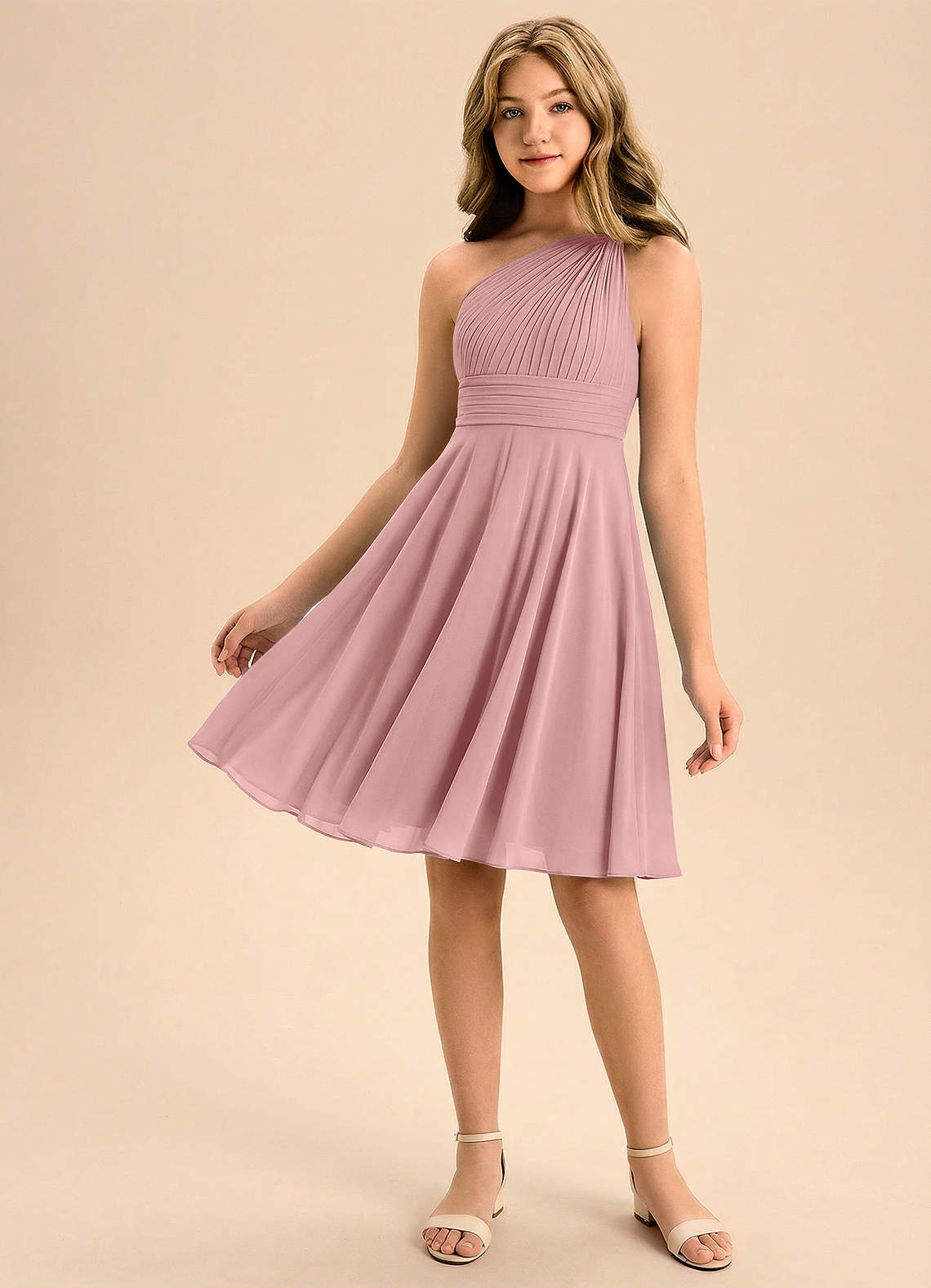 Jurk van Chiffon met A-Lijn Geplooid Stoffige Roos