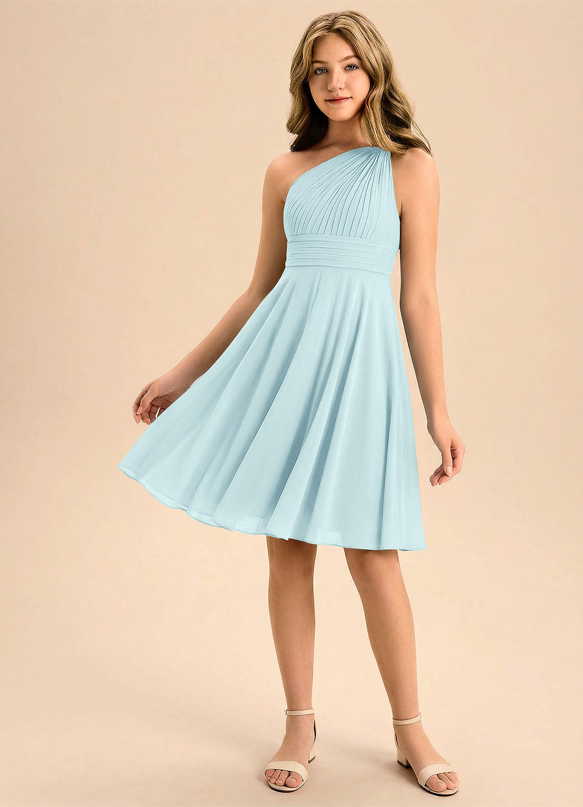 Jurk van Chiffon met A-Lijn Geplooid Zeeglas