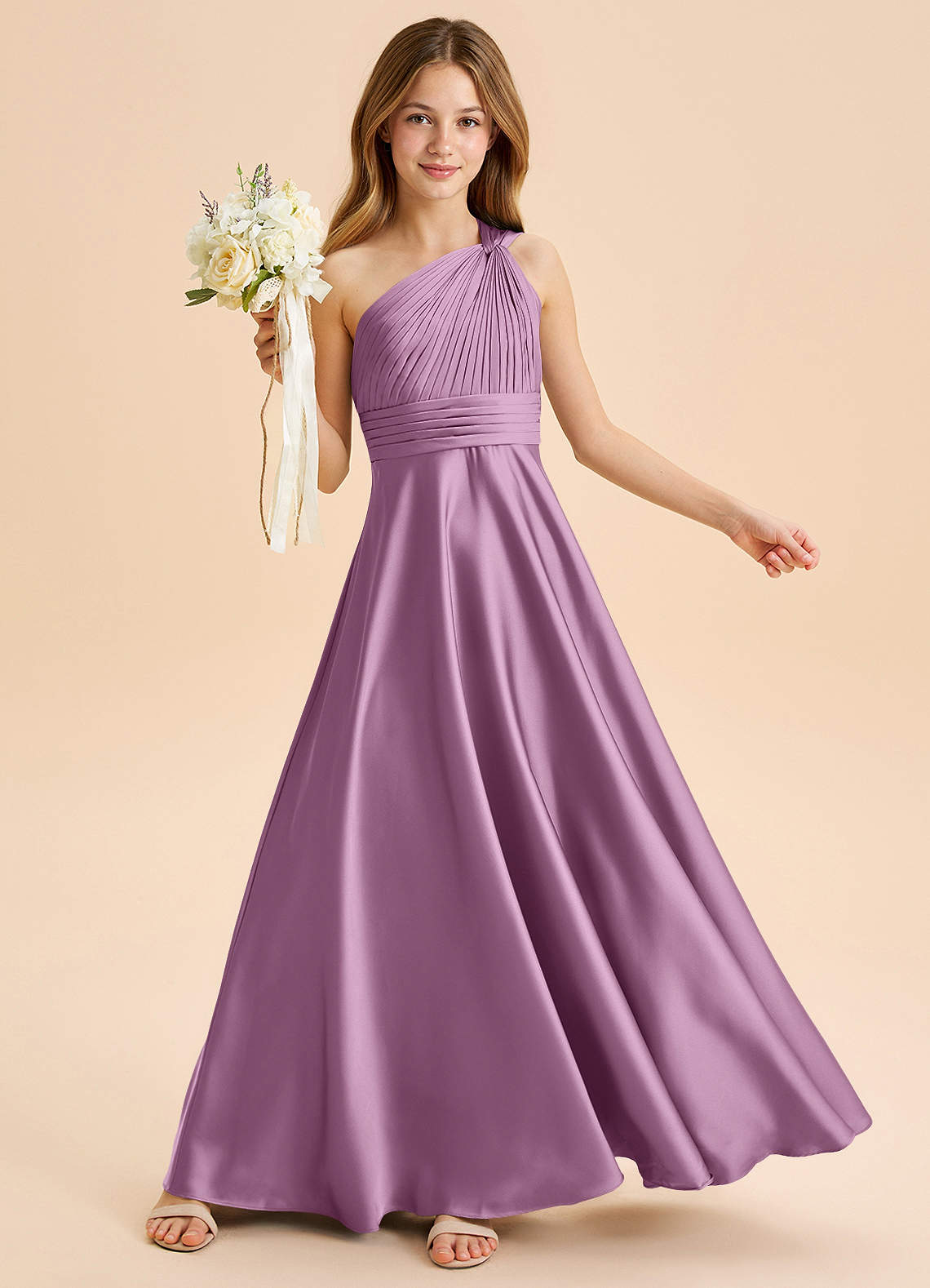 Jurk van Stretch Satijn met A-Lijn Geplooid Blauweregen