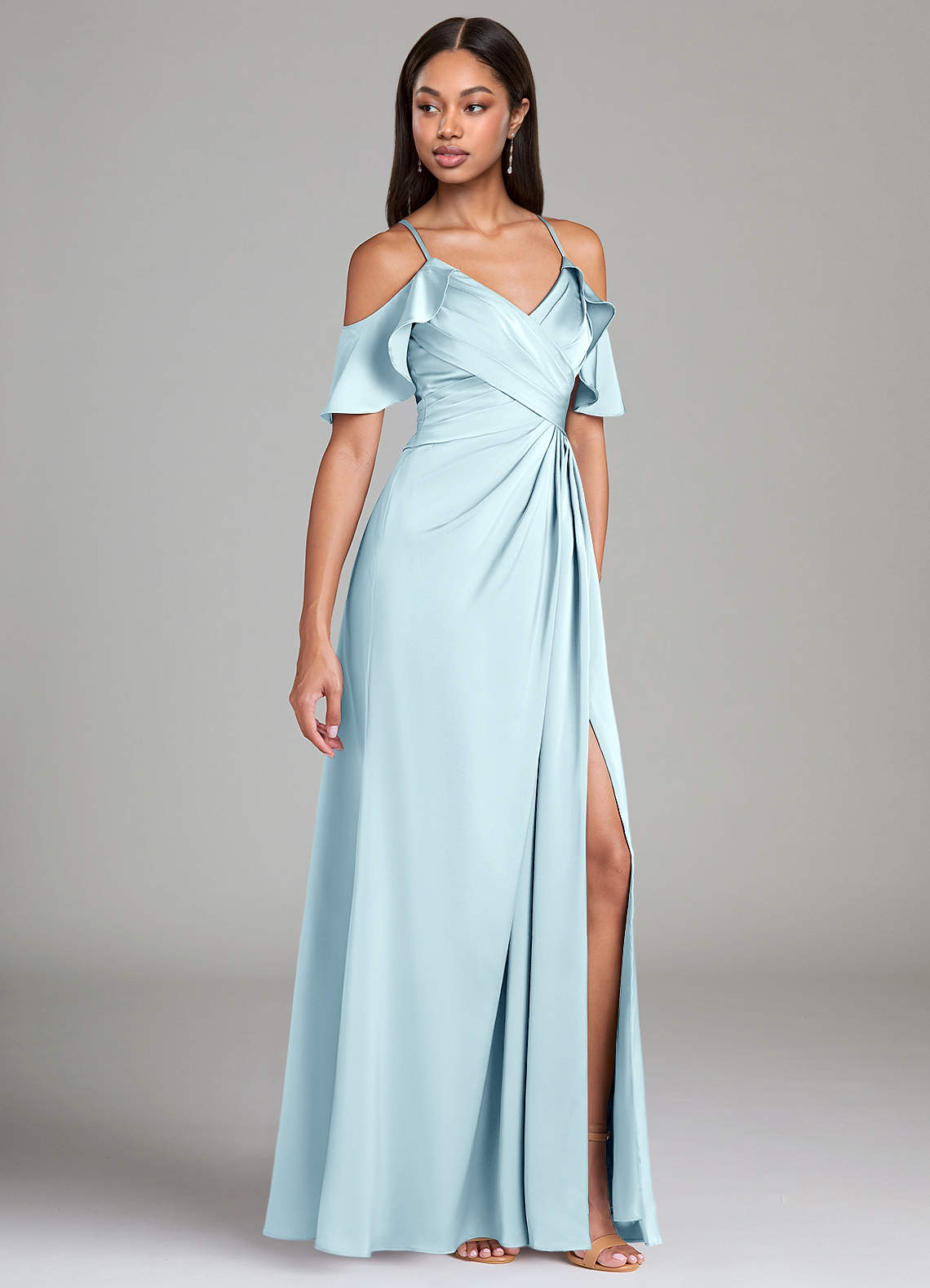 Jurk van Stretch Satijn met A-Lijn Off the Shoulder Wolkenblauw