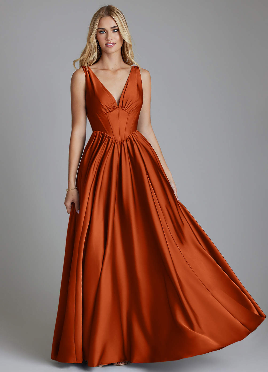 Jurk van Stretch Satijn met A-Lijn Korset Verbrande Sinaasappel