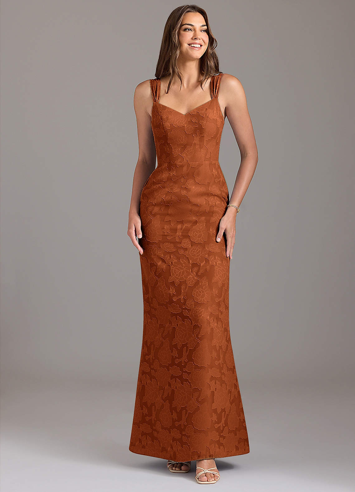 Jurk van Bloemen Burn-out met A-Lijn Geplooid Verbrande Sinaasappel