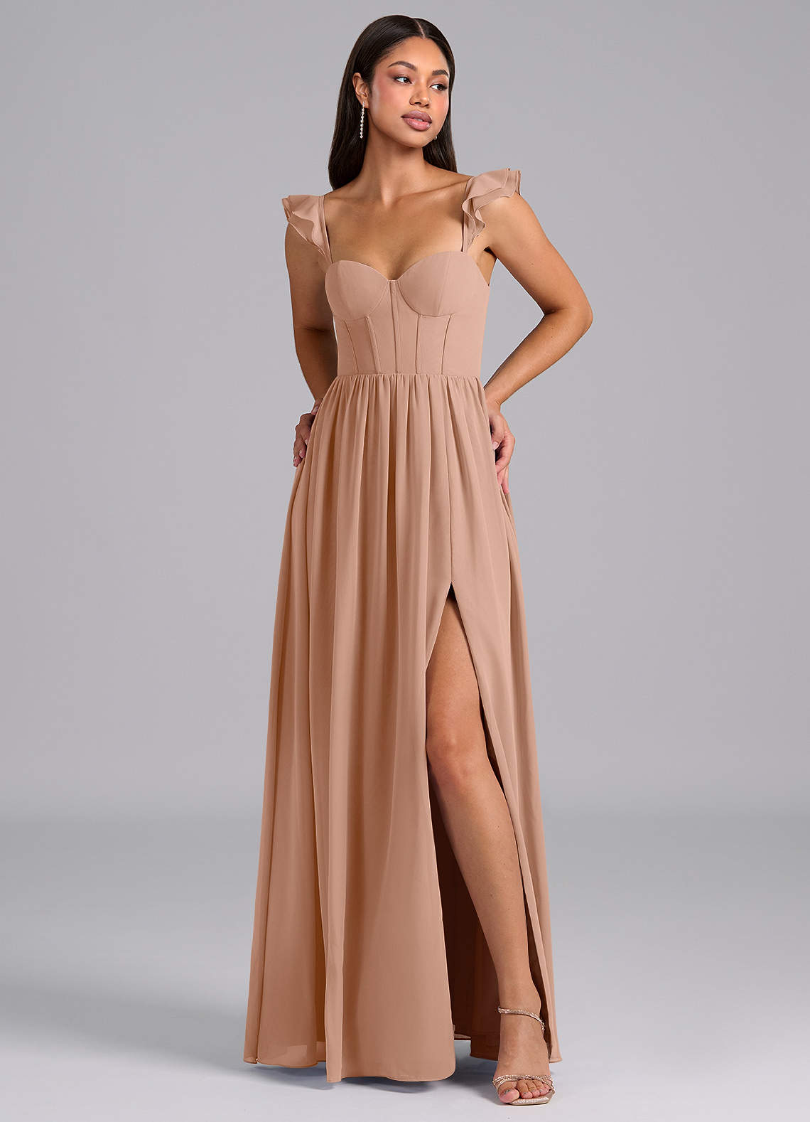 Jurk van Chiffon met A-Lijn Ruches Champagne Roos