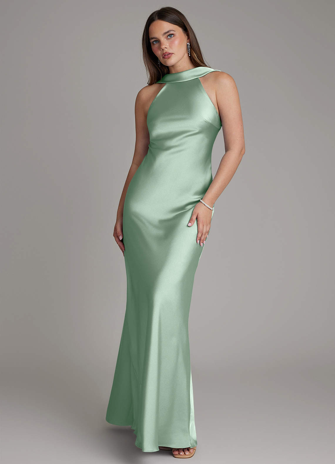 Jurk van Stretch Satijn met A-Lijn Geplooid Agave