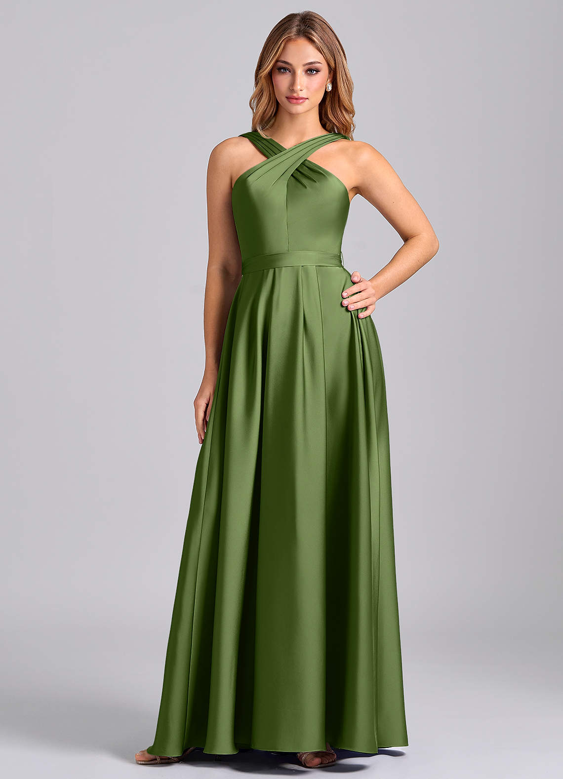 Jurk van Stretch Satijn met A-Lijn Geplooid Jeneverbes