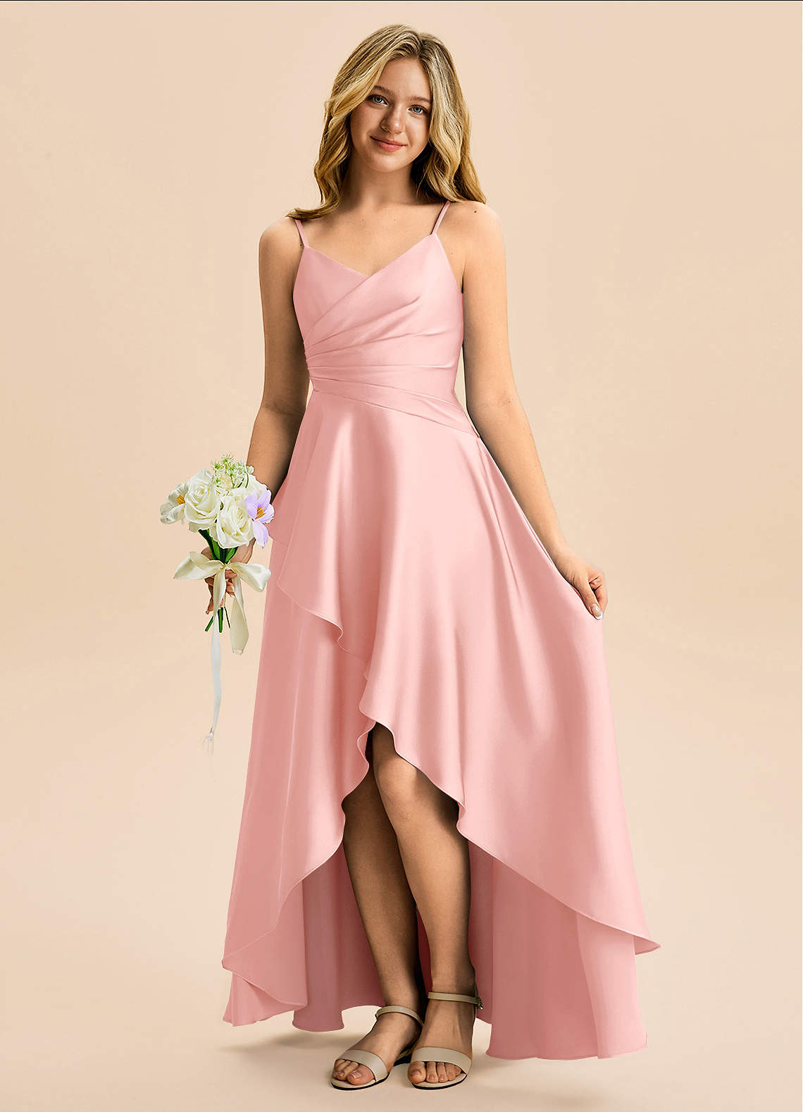 Jurk van Stretch Satijn met A-Lijn Geplooid Poederroze
