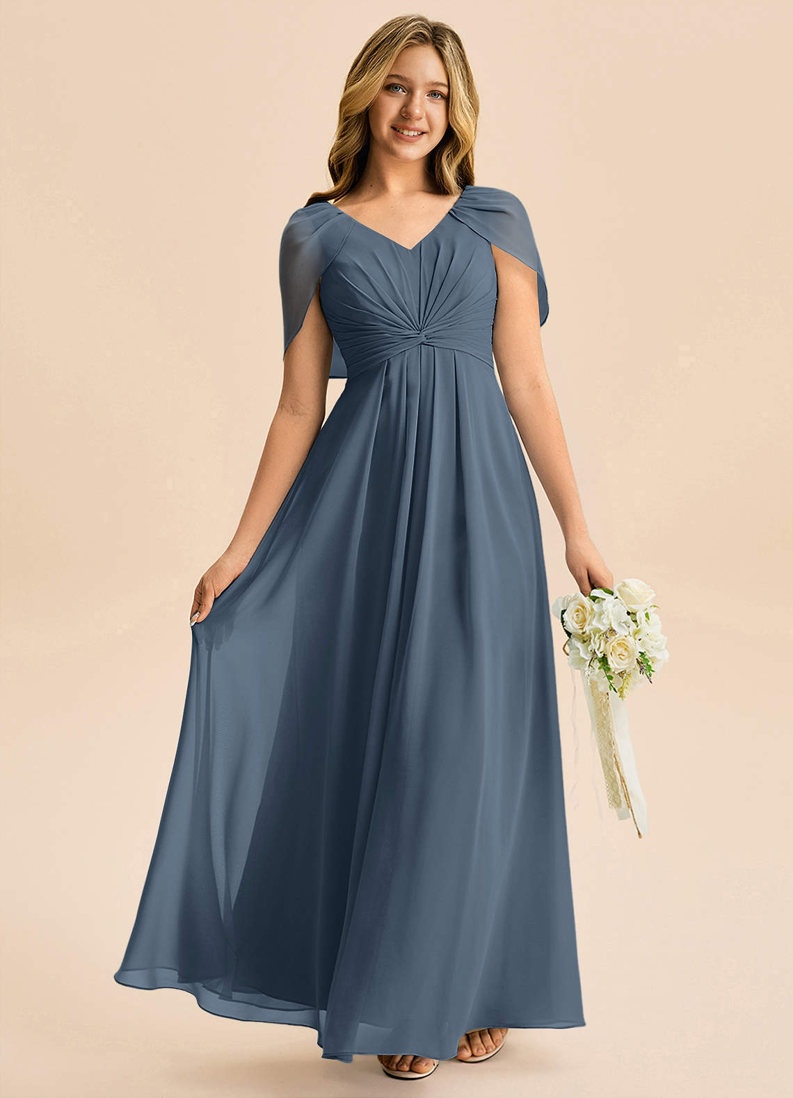 Jurk van Chiffon met A-Lijn Geplooid Neptunus