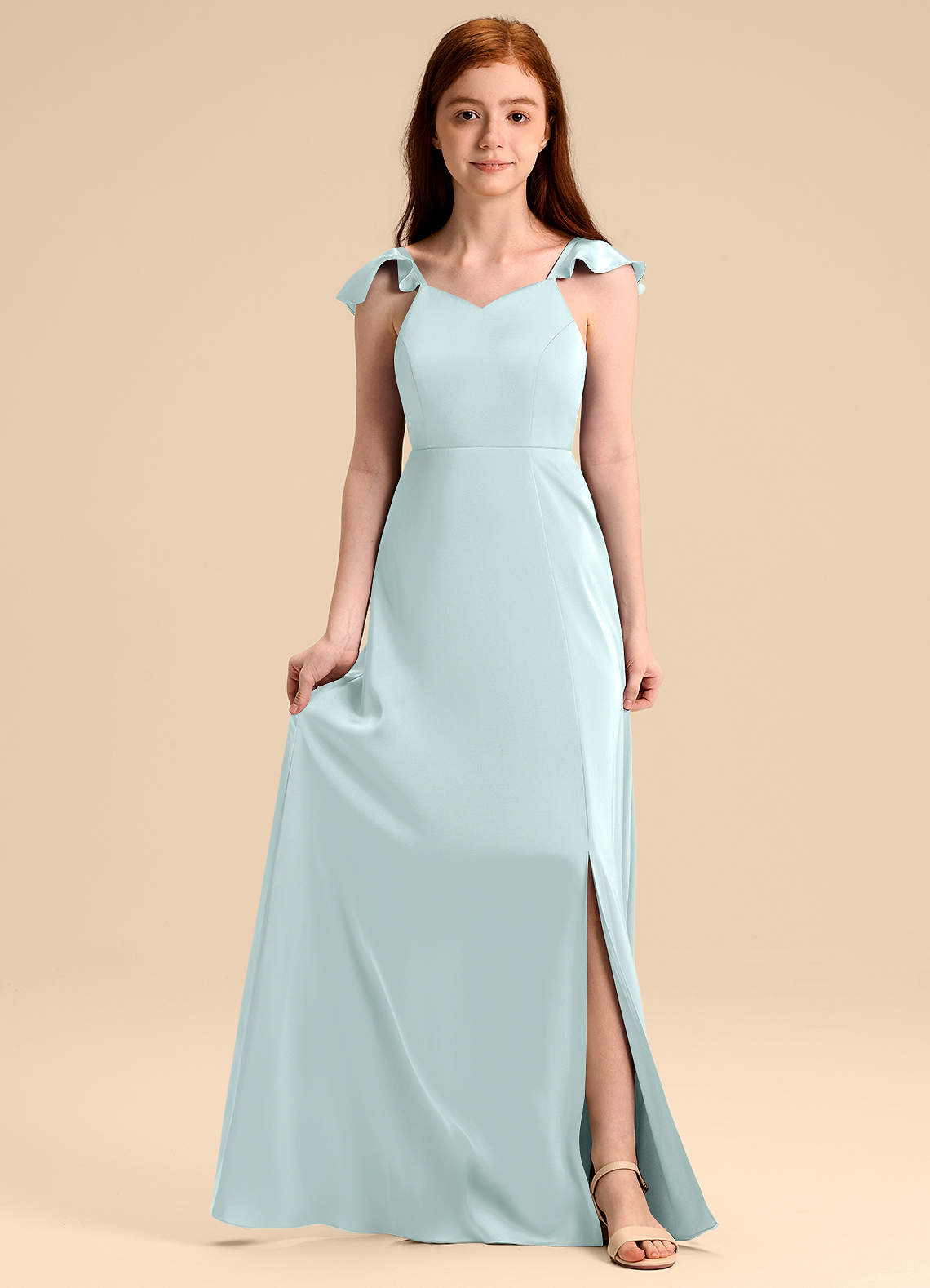 Jurk van Stretch Satijn met A-Lijn Boog Zeeglas