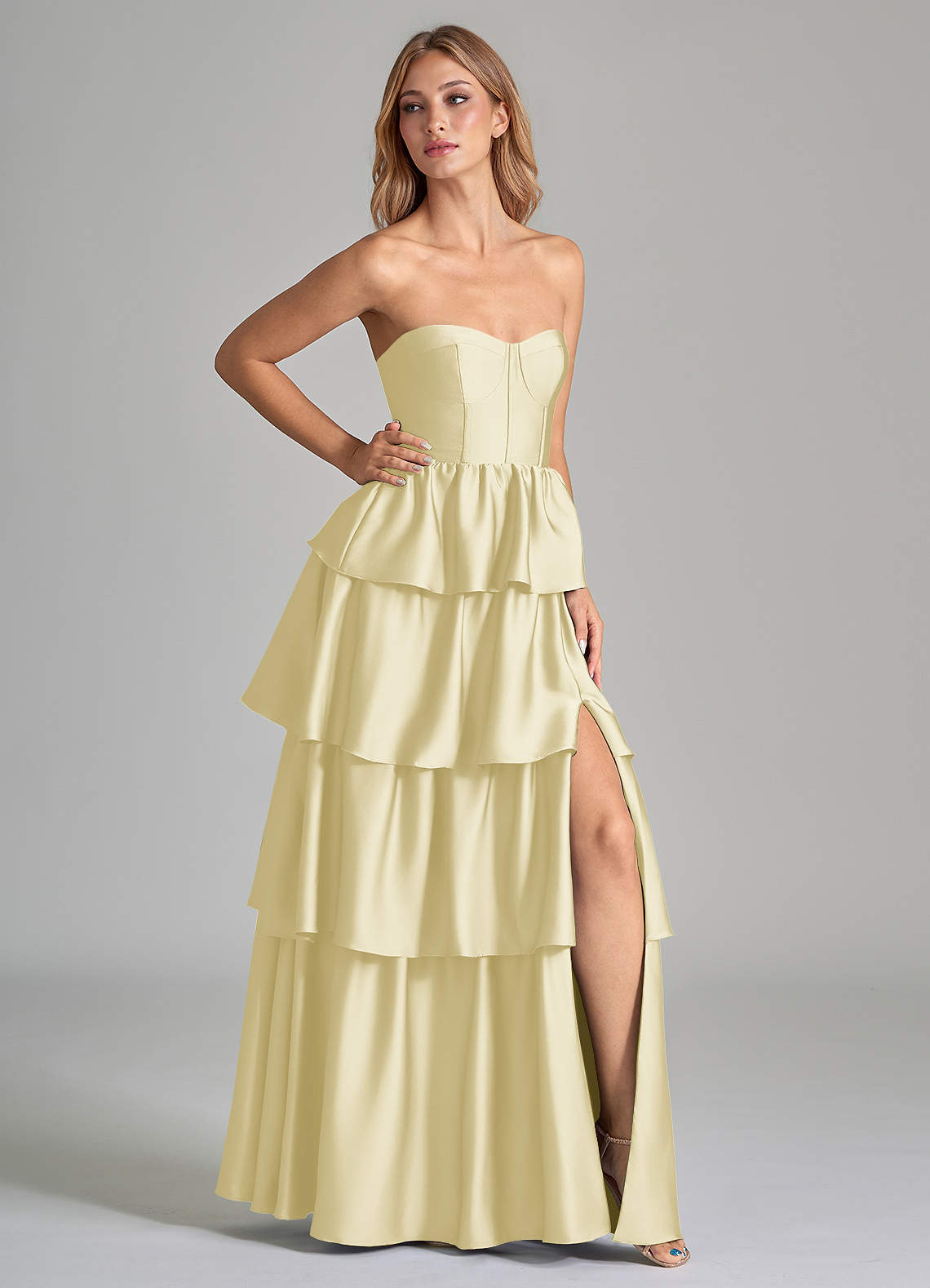 Jurk van Stretch Satijn met A-Lijn Ruches Citroensorbet